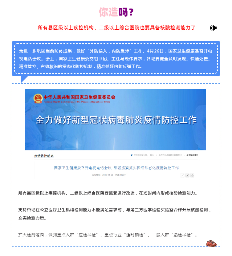 重要通知:縣區(qū)級(jí)以上疾控機(jī)構(gòu)、二級(jí)以上綜合醫(yī)院均需具備核酸檢測(cè)能力!