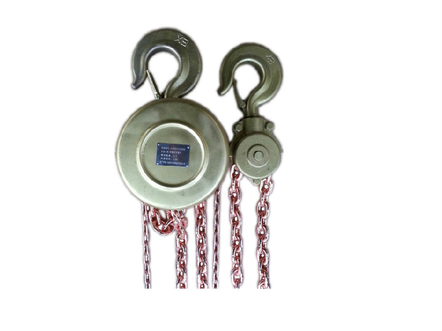 防爆手動葫蘆工作原理與普通的手拉葫蘆相同,都是通過拉動手拉鏈條帶動手拉鏈輪開始,帶動摩擦片、棘輪、制動器座一起轉動,最終由五齒長軸帶動片齒輪、短軸齒輪、花鍵孔齒輪,就能夠實現起重鏈輪帶動起重鏈條平穩的吊運重物了。