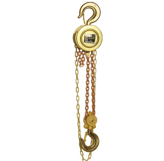 防爆手拉葫蘆指的是采用鋁青銅或者鈹青銅材質制造而成的非鋼材類起重設備,它的生產制造歷史要晚于普通錳鋼手拉葫蘆,其目的是為了提高易燃易爆環境內的吊裝作業安全系數。